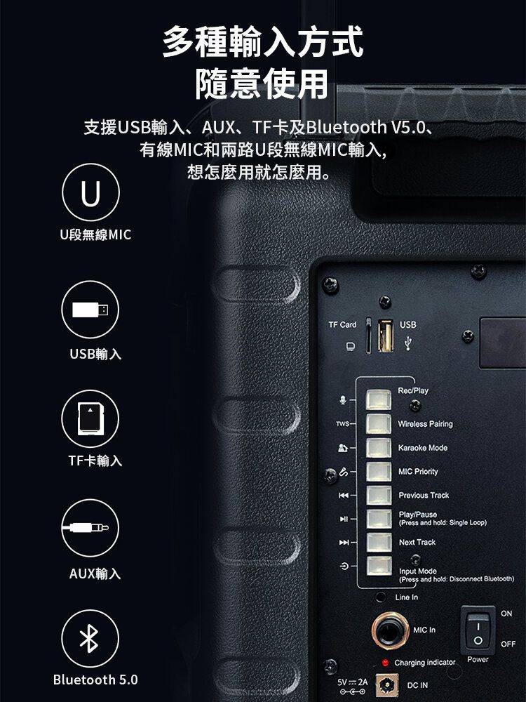 多種輸入 Bluetooth / AUX / USB / TF Card