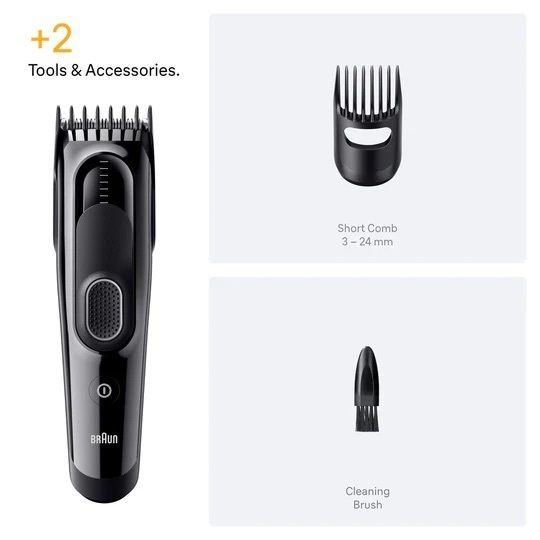 博朗 5 系列 HC5510 理髮器可精準修剪毛髮,打造心儀的造型。這款男士理髮器套裝是博朗男士美容系列的一員,讓您在家中即可享受卓越的修剪效果。持久的鋒利刀片可輕鬆應對各種毛髮密度和類型,帶來高品質、精心修飾的效果。 HC5510 男士理髮器採用德國設計,經久耐用。