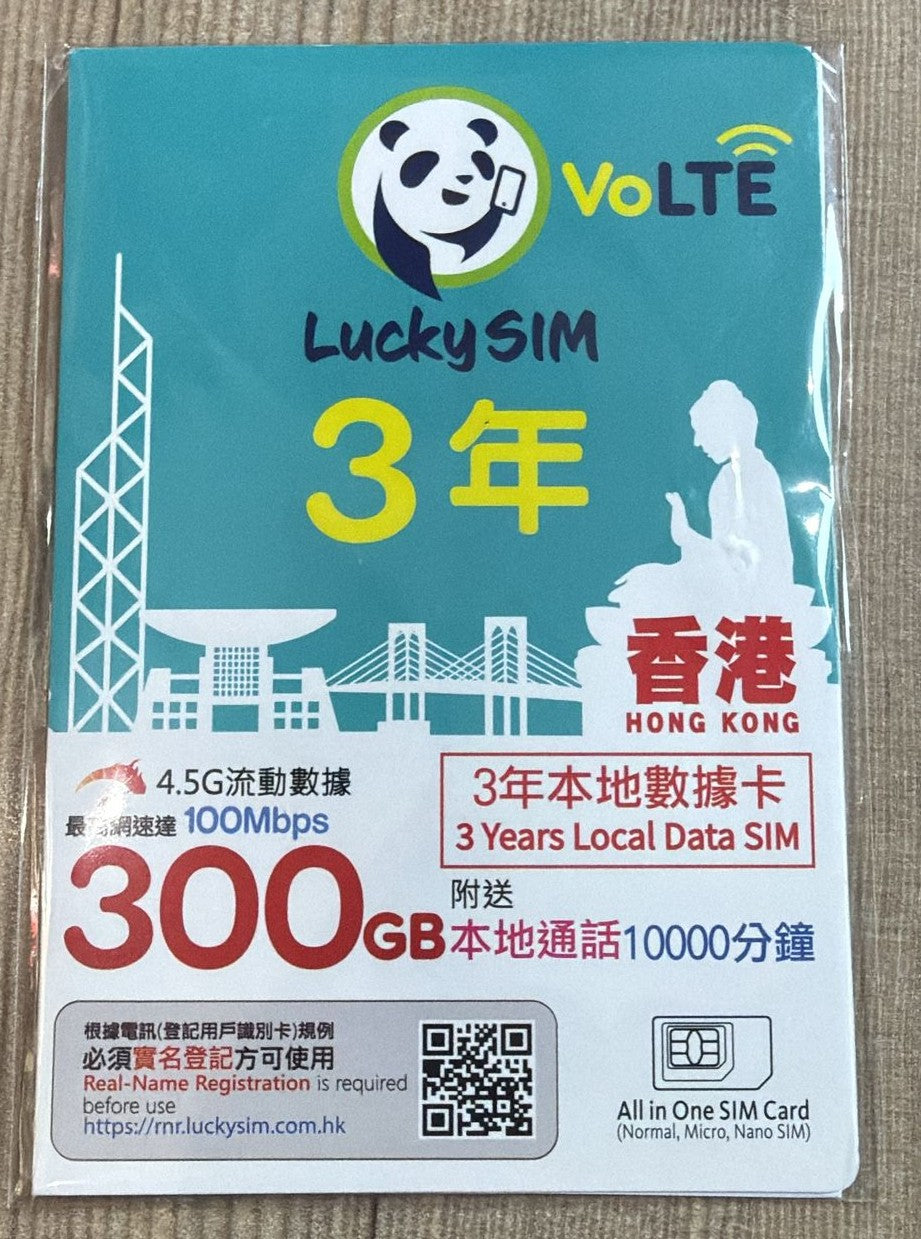 Lucky Sim 4.5G, 香港數據, 3年 300GB 數據卡 + 本地通話 10000分鐘