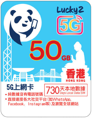 Lucky2 香港 本地數據卡 Sim card 5G 50GB 730日 LTE VOLTE 純數據 2年 年卡